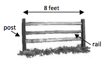 High Meadow Stables needs to replace the post and rail fence around one of their paddocks. The paddock is a 104’ x 64’ rectangle and each fence section is 8 feet wide from the center of one post to the center of the next post.